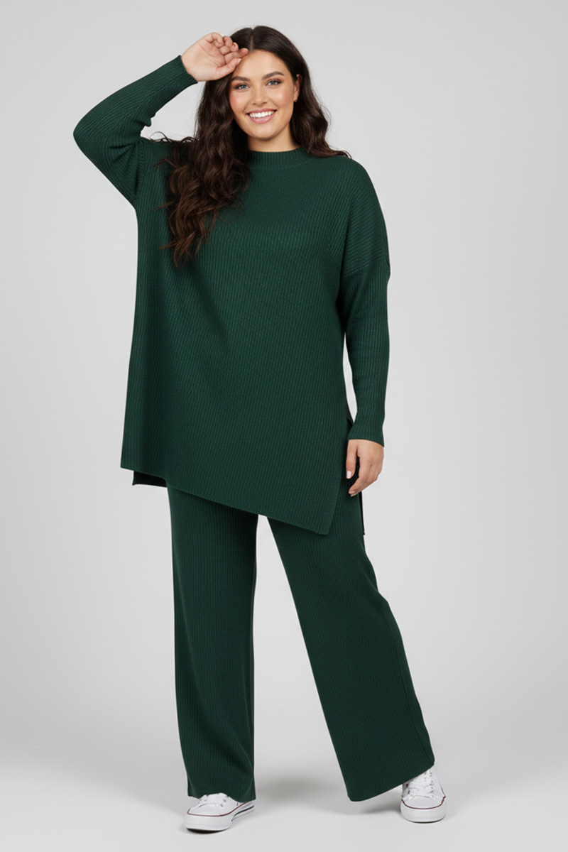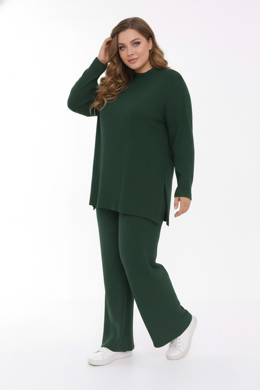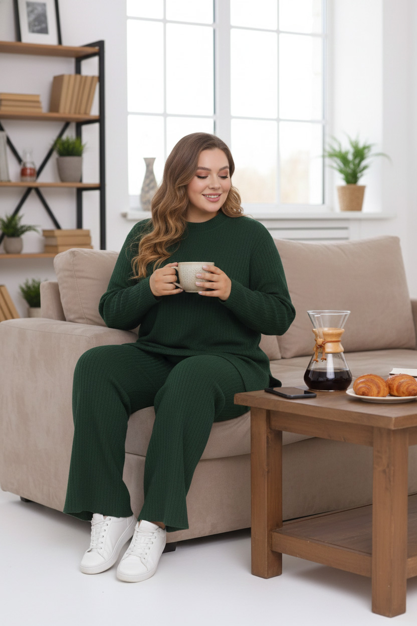 Γυναικείο Σετ φτιαγμένο από ριπ (πλεκτό) ύφασμα σε Κυπαρισσί Χρώμα Plus Size