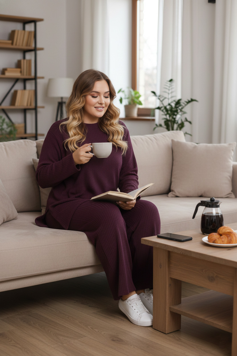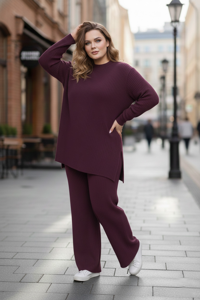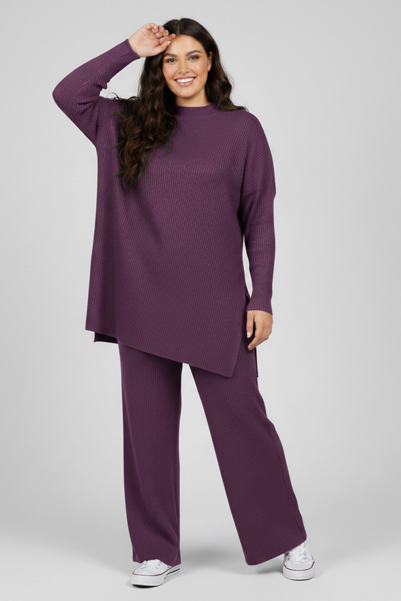 Γυναικείο Σετ φτιαγμένο από ριπ (πλεκτό) ύφασμα σε Μοβ Χρώμα Plus Size