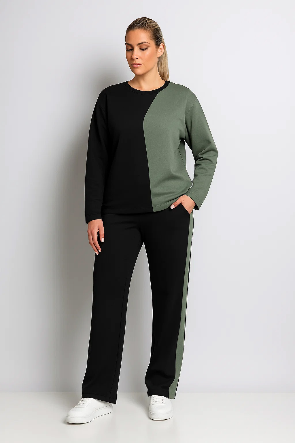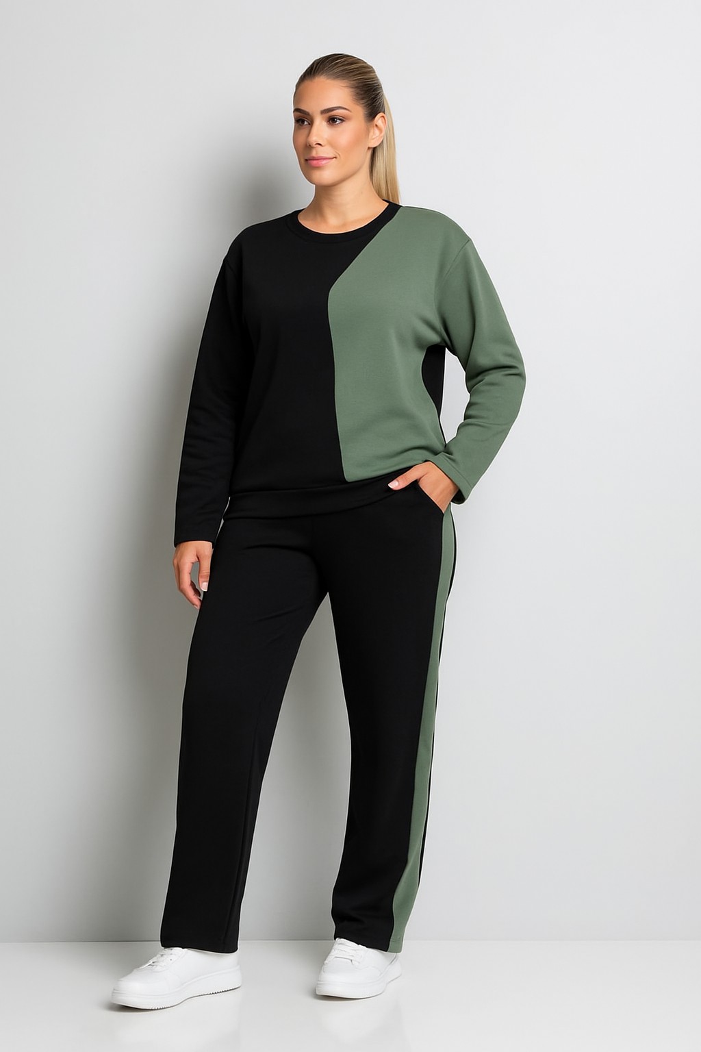 Γυναικείο Σετ φόρμα σε Μαύρο/Πράσινο Χρώμα Με Ρίγα Βουτυρένια υφή σε Viscose Plus Size