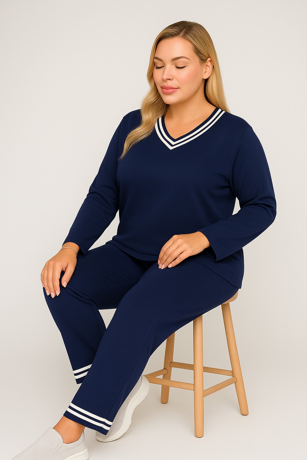 Γυναικείο Σετ φόρμες σε Μπλε χρώμα V λεπτομέρειες σε βισκοζ λικρα Plus Size