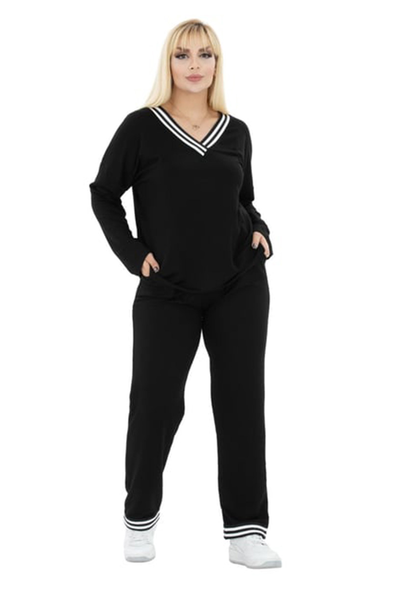 Γυναικείο Σετ φόρμες σε Μαύρο Χρώμα V Λεπτομέρειες σε βισκοζ λικρα Plus Size