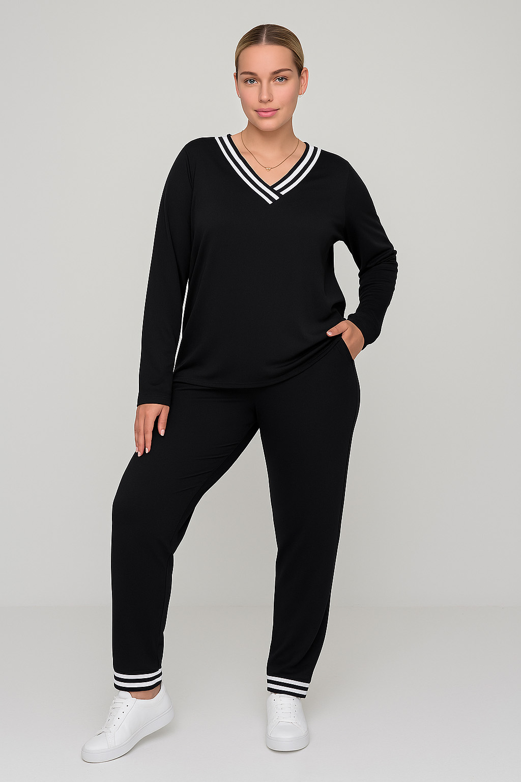Γυναικείο Σετ φόρμες σε μαύρο χρώμα V λεπτομέρειες σε βισκοζ λικρα Plus Size